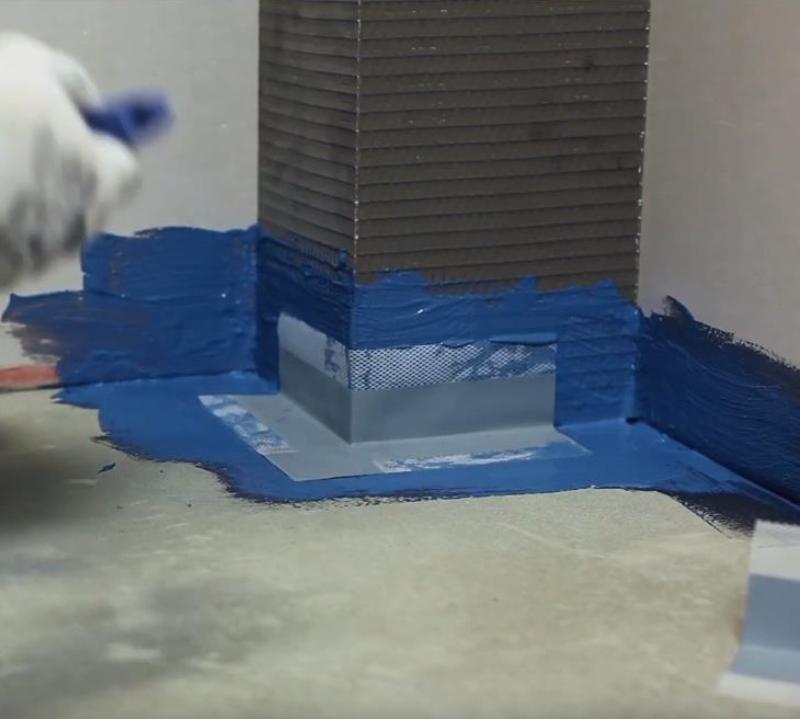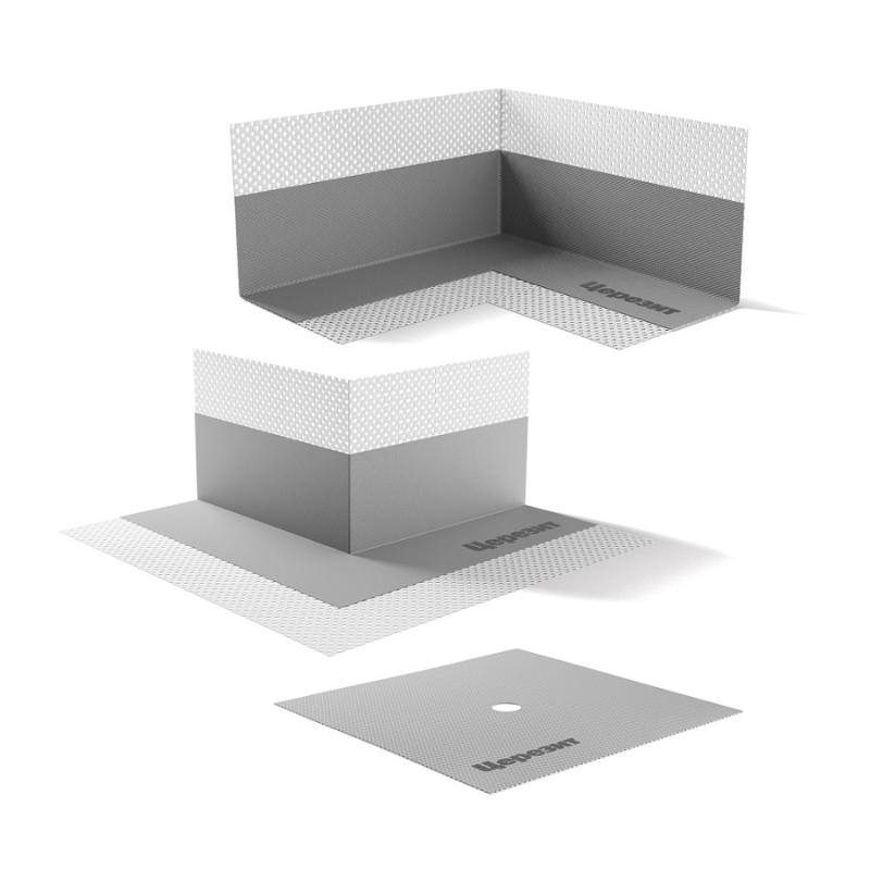Угловой элемент для герметизации внешних углов. Угловые элементы CL 87 представляют собой эластичный полиэфирный трикотаж, имеющий сетчатую структуру, водонепроницаемым покрытием из эластомера, и предназначены для герметизации внешних углов. Сетчатая структура обеспечивает хорошую фиксацию угловых элементов в гидроизолирующей массе. Угловой элемент CL 87 предназначен для герметизации внешних углов. Угловые элементы применяются внутри и снаружи зданий в сочетании с эластичной гидроизоляцией CL 51 или CR 166 и водонепроницаемой лентой CL 152 при условии отсутствия негативного (со стороны основания) давления воды — в помещениях с влажным и мокрым режимами эксплуатации, бассейнах, резервуарах и т. д. В санузлах угловые элементы допускается вклеивать с помощью гидроизоляционной массы CR 65.